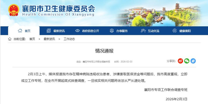 · 精神病院违规收治患者、涉嫌套取医保资金?湖北襄阳、宜昌分别成立联合调查专班。