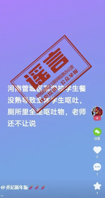 • 河南郑州管城区某学校传出全体学生呕吐传闻,官方已辟谣。