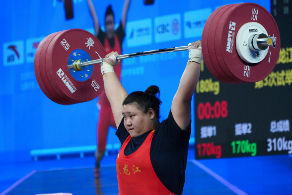女子76公斤级,福建名将廖桂芳挺起158公斤的重量,超女子76公斤级挺举世界纪录,创造新的全国纪录。3年间,廖桂芳在71、76、81公斤级都创造过佳绩。2023年利雅得世锦赛,廖桂芳打破71公斤级两项世界纪录夺冠,2024年巴林世锦赛升级到81公斤级参赛包揽3枚金牌,2025年江山亚锦赛在76公斤级又刷新抓举、总成绩两项世界纪录。新周期廖桂芳在国际赛场不可避免要与美国选手里弗斯展开强强对话,后者在今年10月挪威世锦赛上拥有了新周期新级别77公斤级的世界纪录。虽然全力备战全运会缺席了今年世锦赛,但廖桂芳以自己的方式予以“回敬”:她在76公斤级举起的158公斤比里弗斯在77公斤级创造的挺举世界纪录155公斤还高。